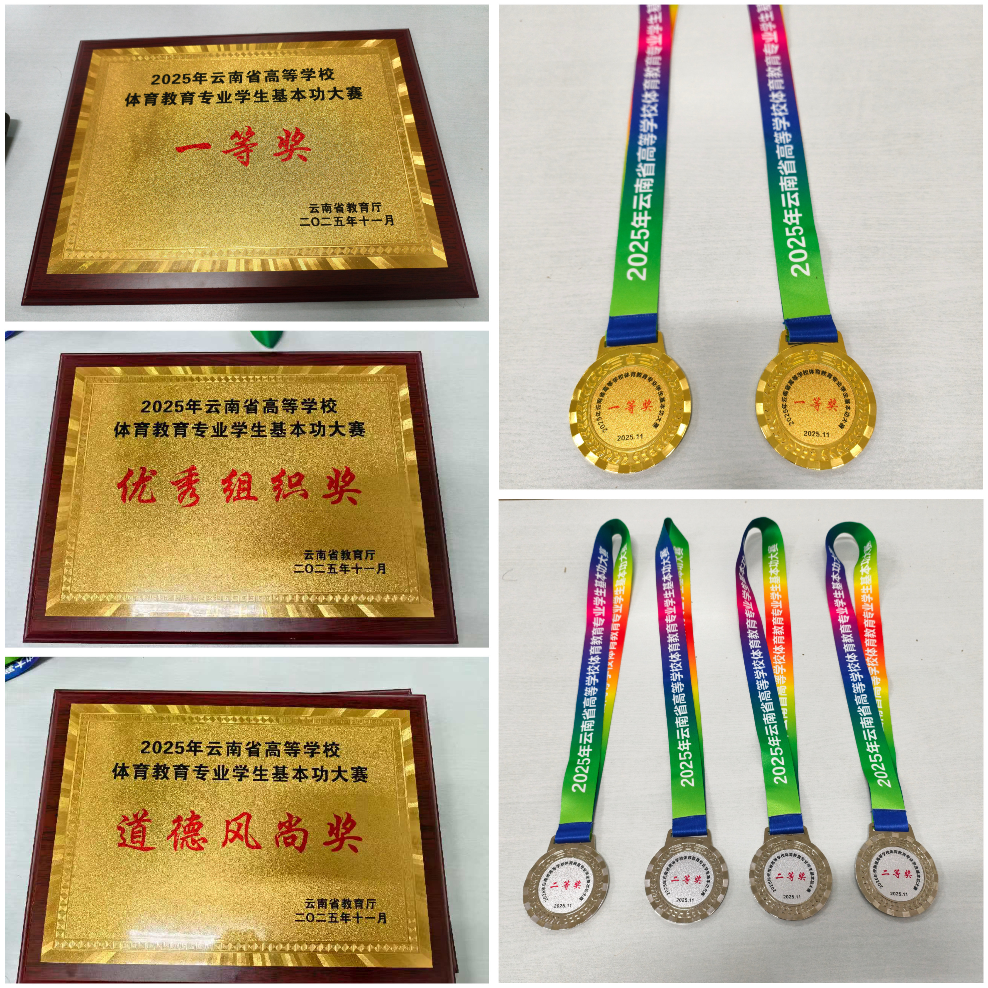 2025年11月3日,云南省高等学校体育教育专业学生基本功技能大赛在红河学院圆满落幕,来自省内20所高校的120名体育教育专业学生参加了此次大赛的角逐。云南大学代表队凭借扎实的专业功底、精湛的运动技能和出色的团队协作,从全省参赛队伍中脱颖而出,一举斩获团体一等奖,同时摘得个人一等奖2项、个人二等奖4项,荣获优秀教练员、优秀组织奖、道德风尚奖,充分展现我校体育教育专业人才培养的丰硕成果。