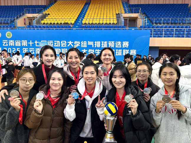 我校气排球队是一支新组建的队伍,在体育学院老师的带领下,组成了涵盖女甲、女丙、男甲、男丙四个组别的参赛阵容。面对经验缺乏、磨合期短等挑战,教练组科学制定系统训练计划,全体队员以“勇攀高峰、为校争光”为信念,刻苦训练、积极备战。这支队伍首战告捷,用拼搏展现了云大学子昂扬的体育精神,为学校赢得了荣誉。